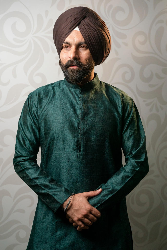 Introducing our sophisticated Brocade Bottle Green kurta paired with trousers, exuding timeless elegance and subtle charm. Crafted from soft and lightweight fabric, this ensemble offers both comfort and style. The intricate self-embroidery adds a touch of refinement, making it perfect for any occasion. Stay cool and fashionable year-round with our classic kurta and matching white trousers. Elevate your wardrobe with this versatile ensemble that combines traditional sophistication with contemporary flair.