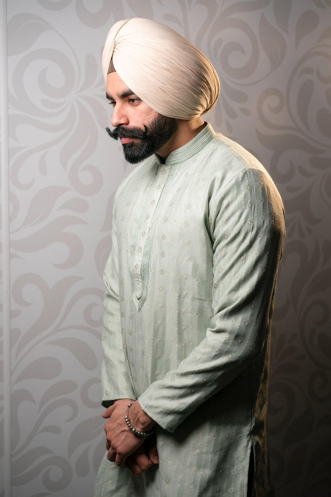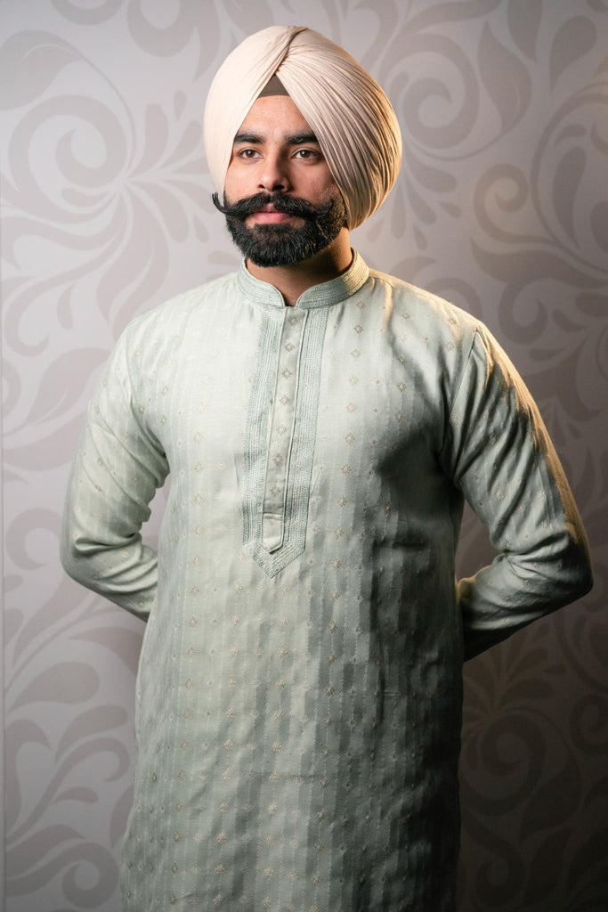 Introducing our sophisticated Mint Green kurta with lining paired with trousers, exuding timeless elegance and subtle charm. Crafted from soft and lightweight fabric, this ensemble offers both comfort and style. The intricate self-embroidery adds a touch of refinement, making it perfect for any occasion. Stay cool and fashionable year-round with our classic kurta and matching white trousers. Elevate your wardrobe with this versatile ensemble that combines traditional sophistication with contemporary flair.
