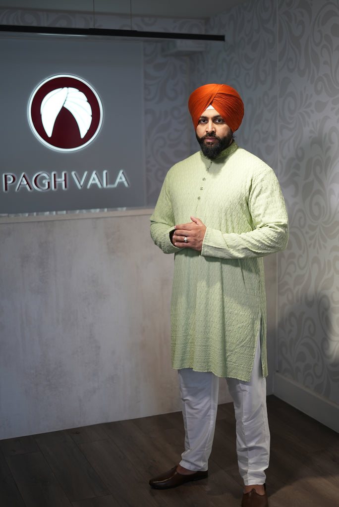 Introducing our charming light green kurta paired with crisp white trousers, adorned with intricate self-embroidery for a touch of elegance. Crafted from soft and lightweight fabric, this ensemble offers both comfort and style. The unique embroidery adds a subtle yet eye-catching detail, making it perfect for any occasion. Stay cool and fashionable year-round with our elegant kurta and matching white trousers. Elevate your wardrobe with this versatile ensemble that combines traditional charm with contemporary flair.