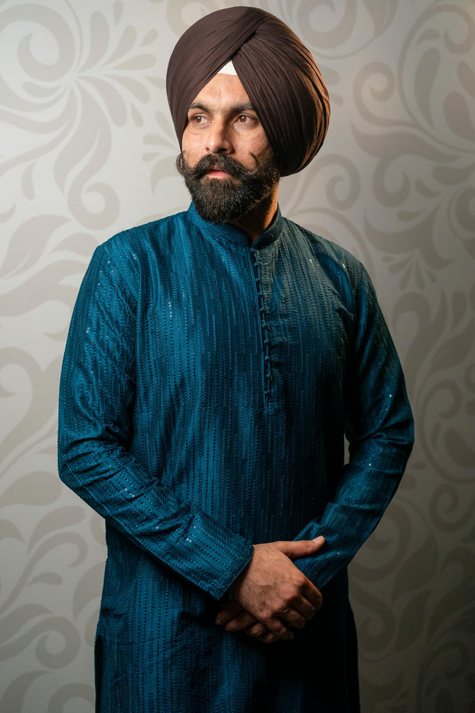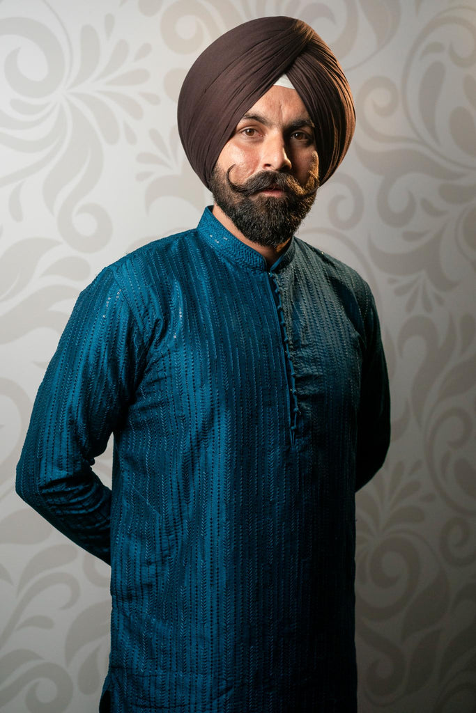 Satin Stitch Kurta - Peacock Blue
