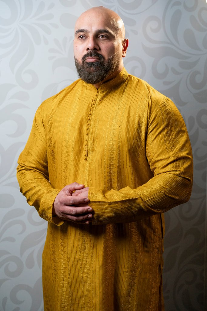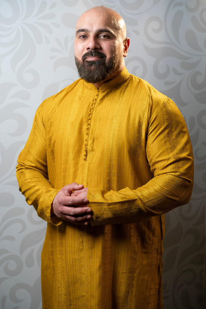 Introducing our sophisticated Mustard kurta paired with trousers, exuding timeless elegance and subtle charm. Crafted from soft and lightweight fabric, this ensemble offers both comfort and style. The intricate self-embroidery adds a touch of refinement, making it perfect for any occasion. Stay cool and fashionable year-round with our classic kurta and matching white trousers. Elevate your wardrobe with this versatile ensemble that combines traditional sophistication with contemporary flair.