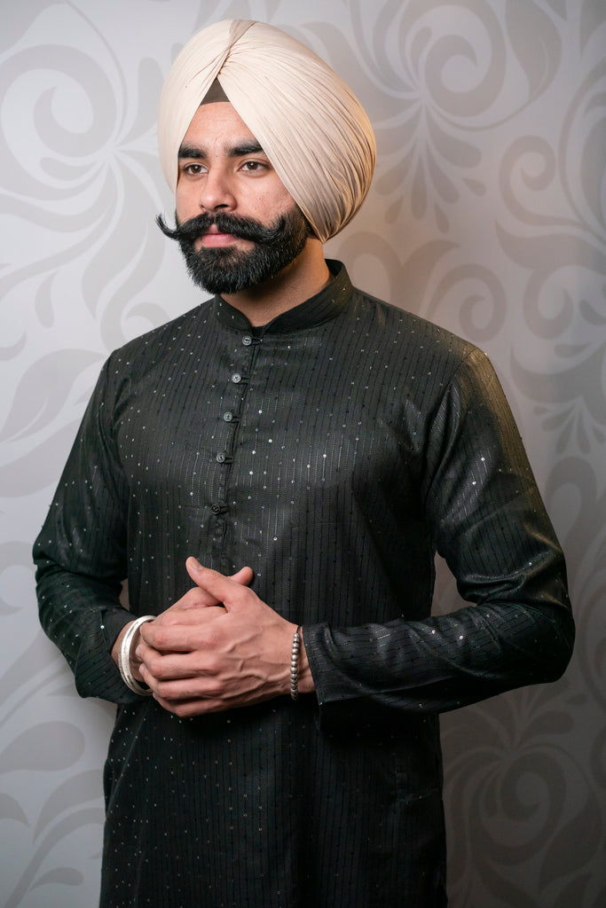 Introducing our sophisticated Black Sequince kurta paired with trousers, exuding timeless elegance and subtle charm. Crafted from soft and lightweight fabric, this ensemble offers both comfort and style. The intricate self-embroidery adds a touch of refinement, making it perfect for any occasion. Stay cool and fashionable year-round with our classic kurta and matching white trousers. Elevate your wardrobe with this versatile ensemble that combines traditional sophistication with contemporary flair.