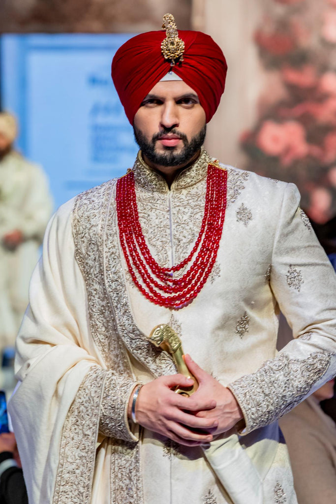 Explore our exquisite collection of a single Brocade with Gold work , meticulously hand-embroidered to perfection. This unique Shervani showcases an elegant design, complete with a Pallah, Mojeh, Chooridarh Pyjami, and Turban Material. Elevate your style with this standout Shervani, ideal for making a lasting impression at any special occasion.