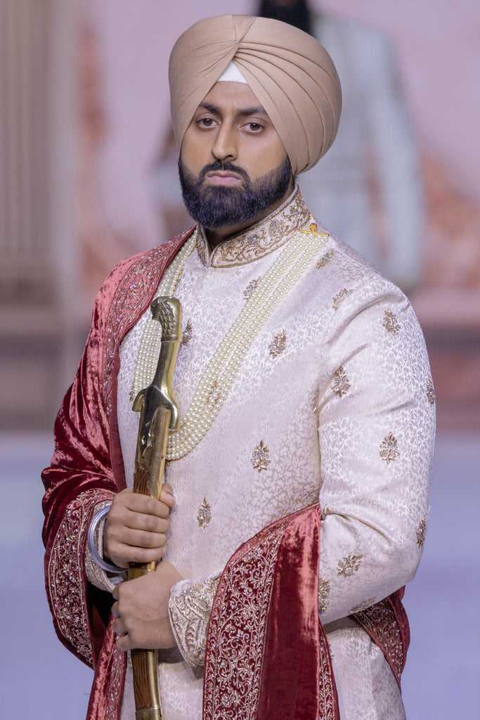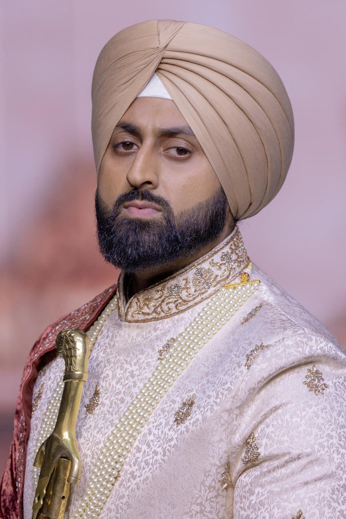 Explore our exquisite collection of a single Brocade with Rose Gold work , meticulously hand-embroidered to perfection. This unique Shervani showcases an elegant design, complete with a Pallah, Mojeh, Chooridarh Pyjami, and Turban Material. Elevate your style with this standout Shervani, ideal for making a lasting impression at any special occasion.